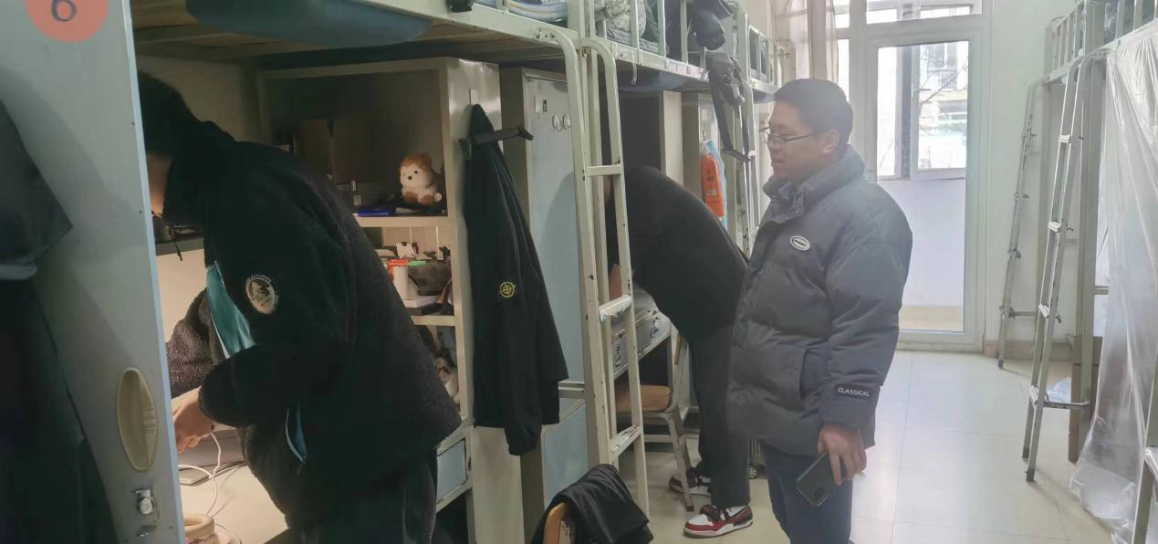 走访中,老师们还对环境卫生、用电安全等情况进行全面、细致地走访检查,叮嘱大家要增强自律意识,加强自我管理,遵守校纪校规,共同维护好宿舍干净整洁的生活环境,以崭新的面貌迎接新学期的学习生活。对于部分内务较乱、卫生较差的宿舍,老师们督促同学即刻整改,带头帮助大家收拾打扫,起到了立竿见影的效果。打扫后的宿舍焕然一新,干净整洁的居住环境令人神清气爽,心情舒畅。