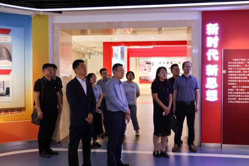 黄学锋一行首先参观了学院思想政治教育基地,重温马克思主义中国化的历程,感受学院思政基地情景教学的特色。在随后召开的座谈会上,双方围绕构建“大思政”育人格局,针对基层党建、大思政课建设等方面进行深入交流,共同探讨整合优质资源,不断增强育人合力。