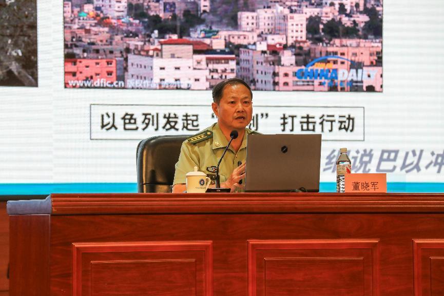 为深入贯彻落实习近平总书记关于全面加强国家安全教育的重要指示批示精神,认真贯彻落实总体国家安全观,进一步开阔学生的国际视野,加强学生对国际形势的认识,引导学生正确认识中国特色和国际比较,全面客观认识当代中国、看待外部世界,9月24日下午,我校邀请国防科技大学军政基础教育学院军事学专家,硕士生导师董晓军教授到校开展题为“冤冤相报何时了—细说巴以冲突始末”的国防教育讲座,学院400余名师生在报告厅聆听讲座。