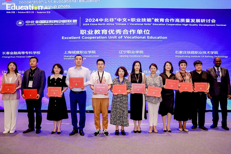 近日,智能工程学院代表学校出席了EducationPlus2024无锡国际职业教育大会暨产教融合博览会,参与大会分论坛中北非“中文+职业技能”教育合作高质量发展研讨会,荣获“职业教育优秀合作单位”、“中文+职业技能”优秀示范项目和中北非职业教育创新合作优秀案例奖项。