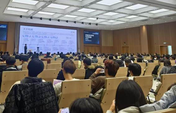 活动伊始,清华大学计算机科学与技术系研究员、博士生导师许斌带来了主旨演讲《预训练大模型:生成式AI时代的基座》。许斌教授深入浅出地解析了大模型在生成式AI时代的重要地位和应用前景,为师生们打开了全新的视野。随后,智谱多模态团队负责人顾晓韬分享了《多模态技术研究与应用探索》,详细阐述了多模态技术在人工智能领域的最新进展和潜在应用。最后,智谱CodeGeeX技术负责人郑勤锴,以《AI时代的编程新范式》为题,探讨了AI技术如何改变编程方式和提升编程效率,引发了师生们的热烈讨论。