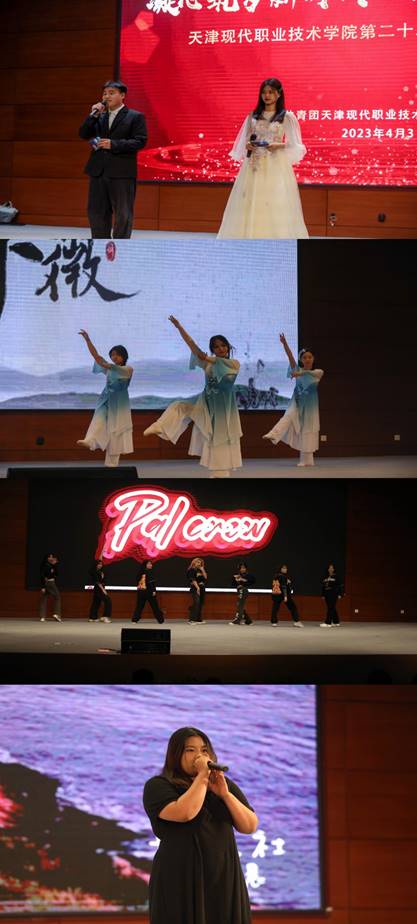 开幕式在师生精心准备的科技文体节宣传视频中拉开帷幕,视频中全景展示了我院科技文体节21年来丰富多彩的第二课堂活动情况以及开拓创新、砥砺奋进的发展历程,立体呈现出在思想教育、学术科技、社会实践和文体素质等方面的文化育人成效。智能工程学院团总支书记刘琛以科技文体节期间的特色活动项目“新时代京津冀实践行”为例做了经验分享,号召广大学生要通过科技文体节的活动平台,立足专业、增长才干,不断提升专业技术应用水平。管理工程学院金融专业的刘鸿丽同学围绕提升技术技能、培育文化素养等方面做了典型发言。开幕式现场,学院艺术团的同学们带来了精彩纷呈的文艺演出,她们用活力阳光的街舞表演展现出现代学子的青春热情;智能工程学院李富洋同学的男生独唱《向往》,用歌声表达出现代学子在中华民族伟大复兴的新征程上展现出的使命担当;还有同学们熟悉的校园乐队和校园歌手演唱《春风十里》、《这世界那么多人》等耳熟能详的青春励志歌曲,以及诗歌朗诵《精神的力量》和民族舞蹈《采薇》等文艺表演。用歌声唱响时代强音,用旋律奏响奋进乐章,用奋斗激扬青春姿态,在全面建设社会主义现代化国家新征程上唱响青春之歌。