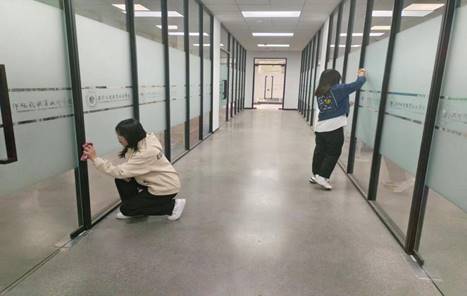 同学们利用课余时间对智能工程学院楼宇周边进行清洁,包括拾捡垃圾、清扫落叶、擦拭栏杆、对机器人1+X实践基地进行清洁打扫等,为美丽校园建设贡献力量。
