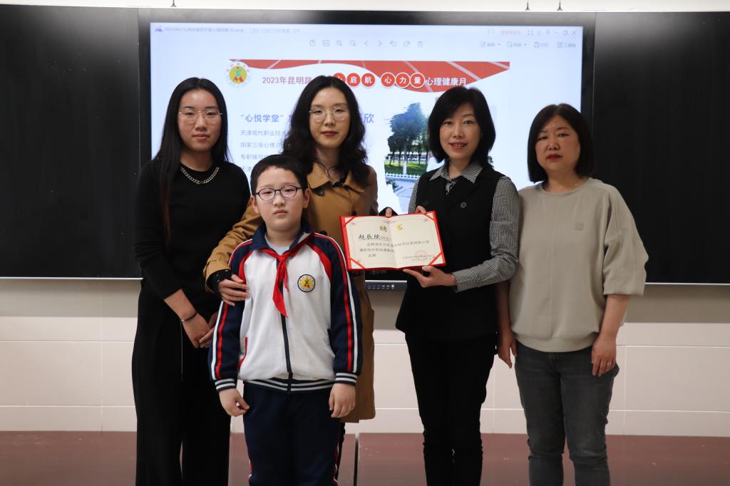 昆明路小学为赵辰欣颁发了“和平区昆明路小学兼职校外思政课教师”聘书。