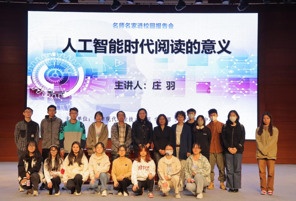 本次活动有幸邀请到著名作家、编剧,中国华文教育基金会反剽窃基金发起人庄羽老师走进现代学院为师生做专题报告,报告的题目是《人工智能时代阅读的意义》。