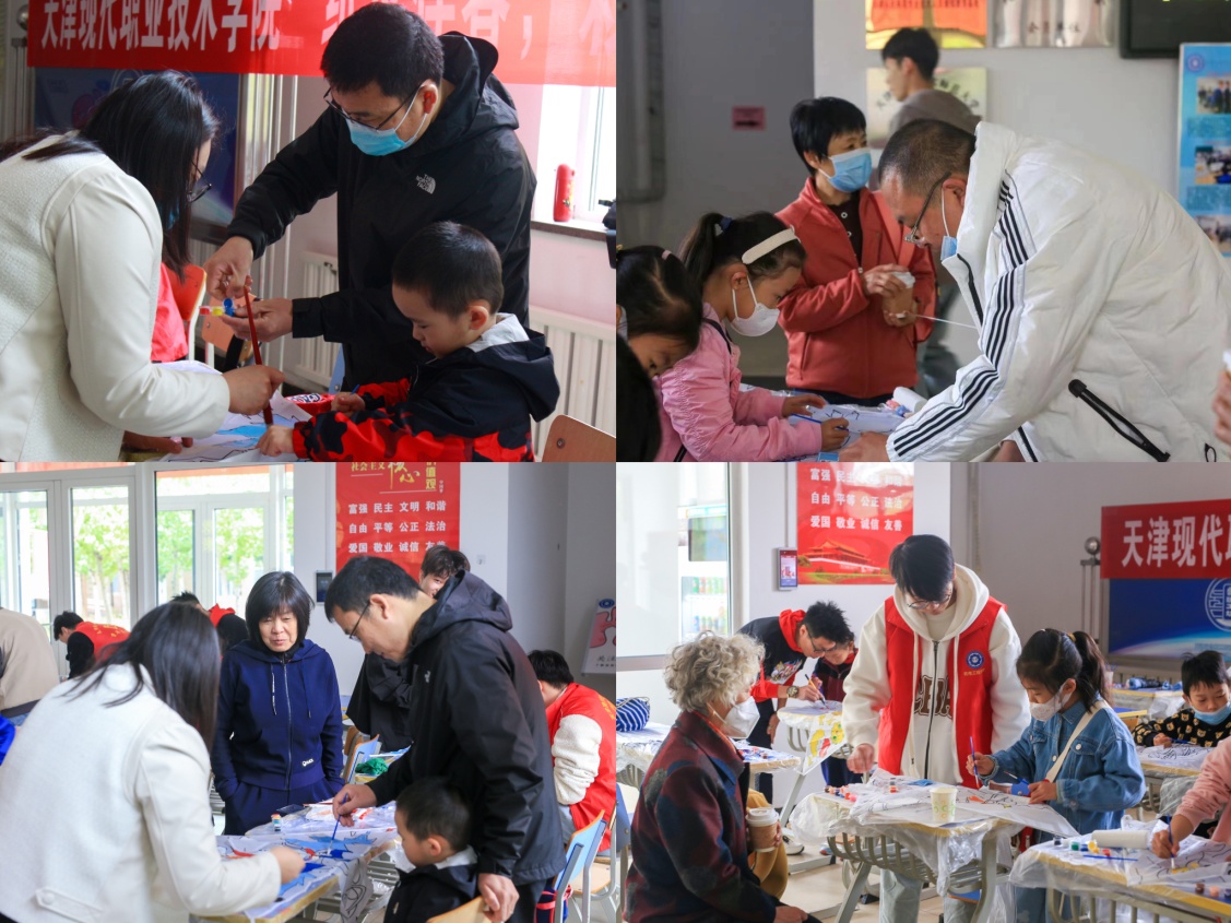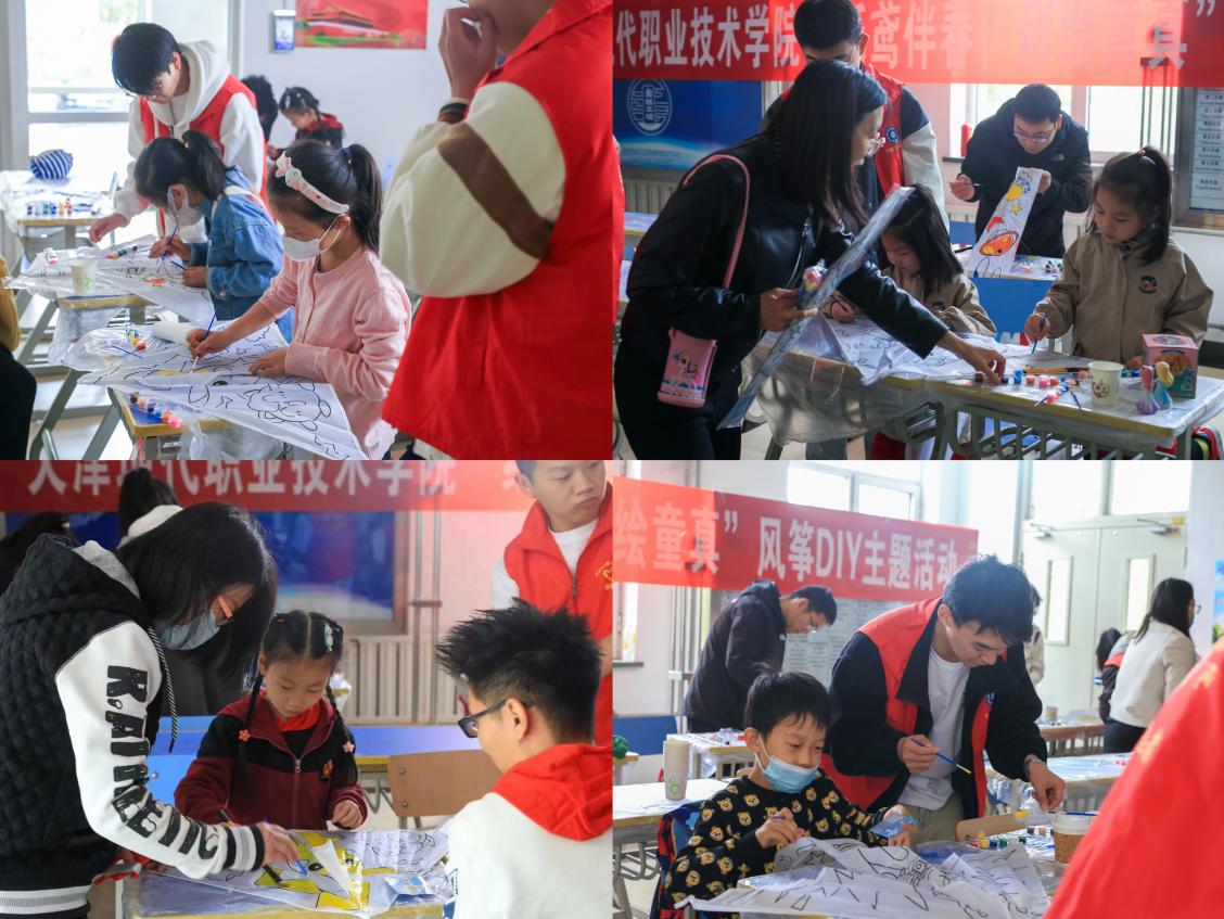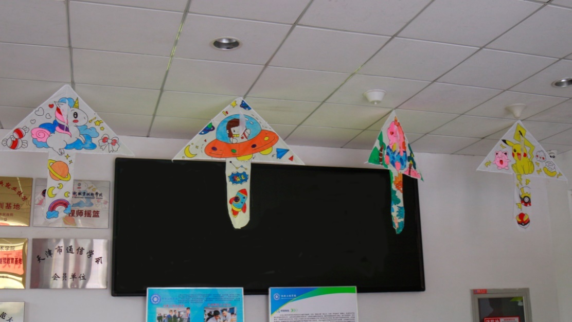参与活动的孩子们都饶有兴致,跃跃欲试,开心地拿起画笔选择自己喜欢的颜色,全神贯注地屏息凝视着铺在桌上的画布风筝,认真的勾勒着五彩的颜色,一幅幅栩栩如生的图案展现在一片片风筝上,学院志愿服务的学生干部们将小朋友们的风筝放置在电子楼一楼进行颜料的晾干,并将其捆绑安装上风筝线,协同家长孩子们一起在学院门前空地上进行放飞。