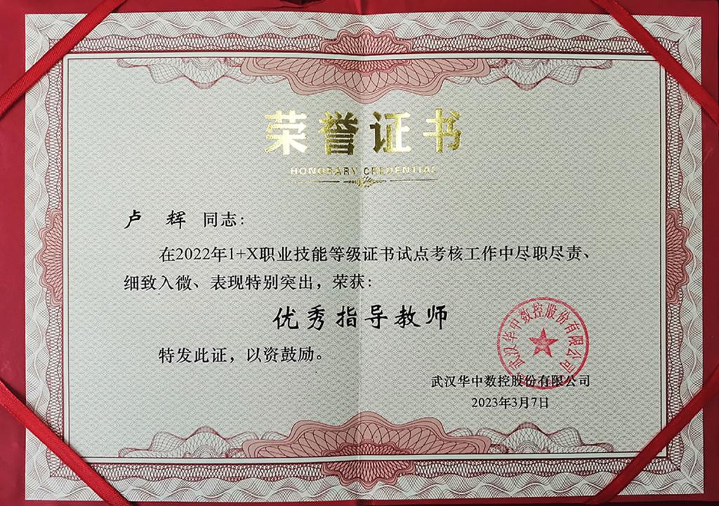 2022年底疫情形势非常严峻的情况下,机电工程学院组织骨干教师队伍提前入住学校,在校连续奋战近一个月,在全面确保师生防疫安全的同时,分工明确职责到位,安全、有序和高效地完成了学生鉴定工作,最终学生取证率达96.6%。根据机电工程学院在鉴定过程和取证率等方面的优异表现,特授予KY开元集团官网2022年 “优秀试点院校”称号,机电工程学院卢辉老师荣获“优秀指导老师”称号。