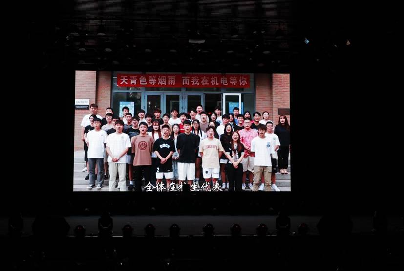 大屏幕上,机电工程学院毕业季视频将毕业生们对学弟学妹们,领导老师们,对机电工程学院,对母校送上最真挚祝福的模样真切地记录着,青春的乐章奏响,熠熠生辉。