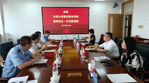 近日,天津公安警官职业学院党委副书记、院长廉军,教务处主任许海华,网络安全和信息化办公室副主任刘洋等一行4人来我院调研交流。学院党委书记康宁,副院长孙勇民,教务处、网信办负责人及相关工作人员参加调研。两校就网络教学平台建设与应用、智慧教学管理等工作进行了座谈。