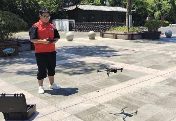 图为2023年全国职业技能大赛一等奖获奖学生陆勇全正在航拍