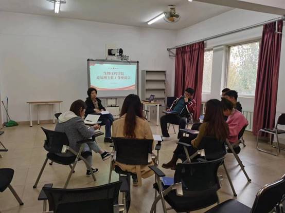 为进一步强化班级管理,提高班主任的管理水平及班主任队伍整体素质,搭建班主任之间互相交流、互相学习、相互促进的平台,11月1日,生物工程学院党总支书记王玲带领辅导员走访班主任,并围绕班级工作进行了座谈交流。