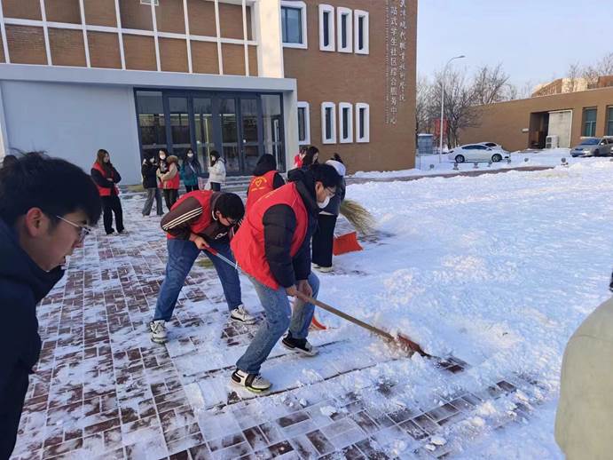 心中有光不畏严寒,信念如炬必融冰雪,师生同心无往不胜。冬雪不期而至,纷纷扬扬的雪花装点了我们美丽的校园,但厚厚的积雪也给师生的学习、就餐、工作出行带来了诸多不便。为保障学校师生安全,确保各项教育教学工作正常开展,校团委充分发挥实践育人功能,着力增强校园文化教育实效,积极组织师生开展扫雪除冰志愿服务活动。