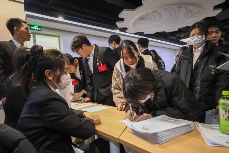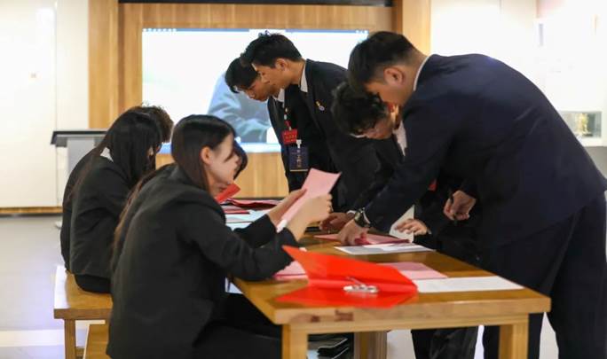 各学生代表签到并领取会议文件