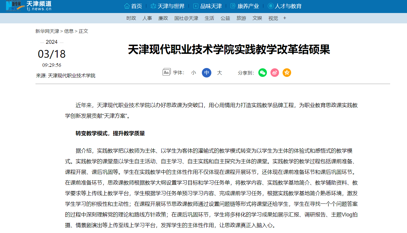 近年来,KY开元集团官网以办好思政课为突破口,用心用情用力打造实践教学品牌工程,为职业教育思政课实践教学创新发展贡献“天津方案”。