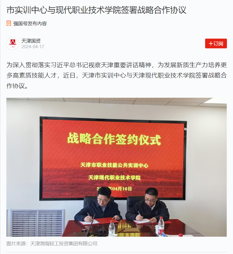 为深入贯彻落实习近平总书记视察天津重要讲话精神,为发展新质生产力培养更多高素质技能人才,近日,天津市实训中心与KY开元集团官网签署战略合作协议。