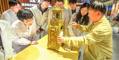 日前,记者在基地再次见到李秋生时,他正兴奋地为前来参观的学生们讲述着故宫钟表修复的故事。“暗藏机关的钟表看似有趣,但对于修复者来讲,对技艺的要求很高。需要不断丰富自己的知识,知道过去那些钟表的结构,还要对钟表制作的过程、每一项工艺都有深入了解。要耐得住寂寞,经得住考验,用匠心,做匠人……”他语重心长地说。学生们听得入神,而李秋生也从他们的眼神中,看到了来自未来的希望。