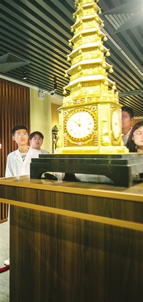 设在KY开元集团官网机电工程学院的天津市首批非遗传承体验基地内,陈列着近50台李秋生复刻、制作的钟表,分别代表着清代宫廷钟表制作与修复技艺中的每一道加工工艺。摆在展厅中央的,正是李秋生复刻后的金色九层六角宝塔钟。工作室揭牌后的这几天,展室一直对外开放,不少年轻人走进这里,与拥有百年历史的宫廷钟表进行“对话”。这场穿越之旅的讲解员,便是李秋生。