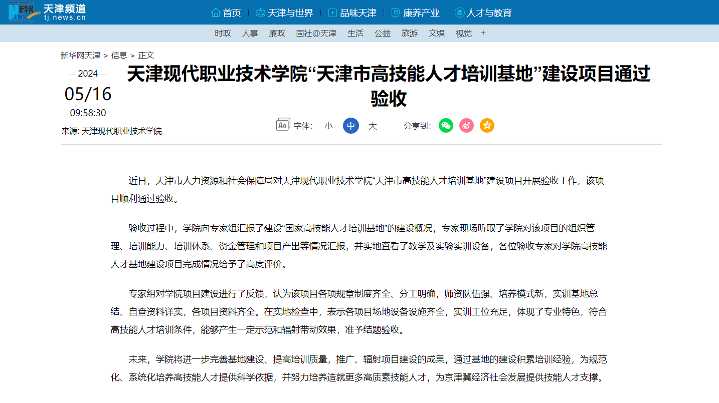 近日,天津市人力资源和社会保障局对KY开元集团官网“天津市高技能人才培训基地”建设项目开展验收工作,该项目顺利通过验收。