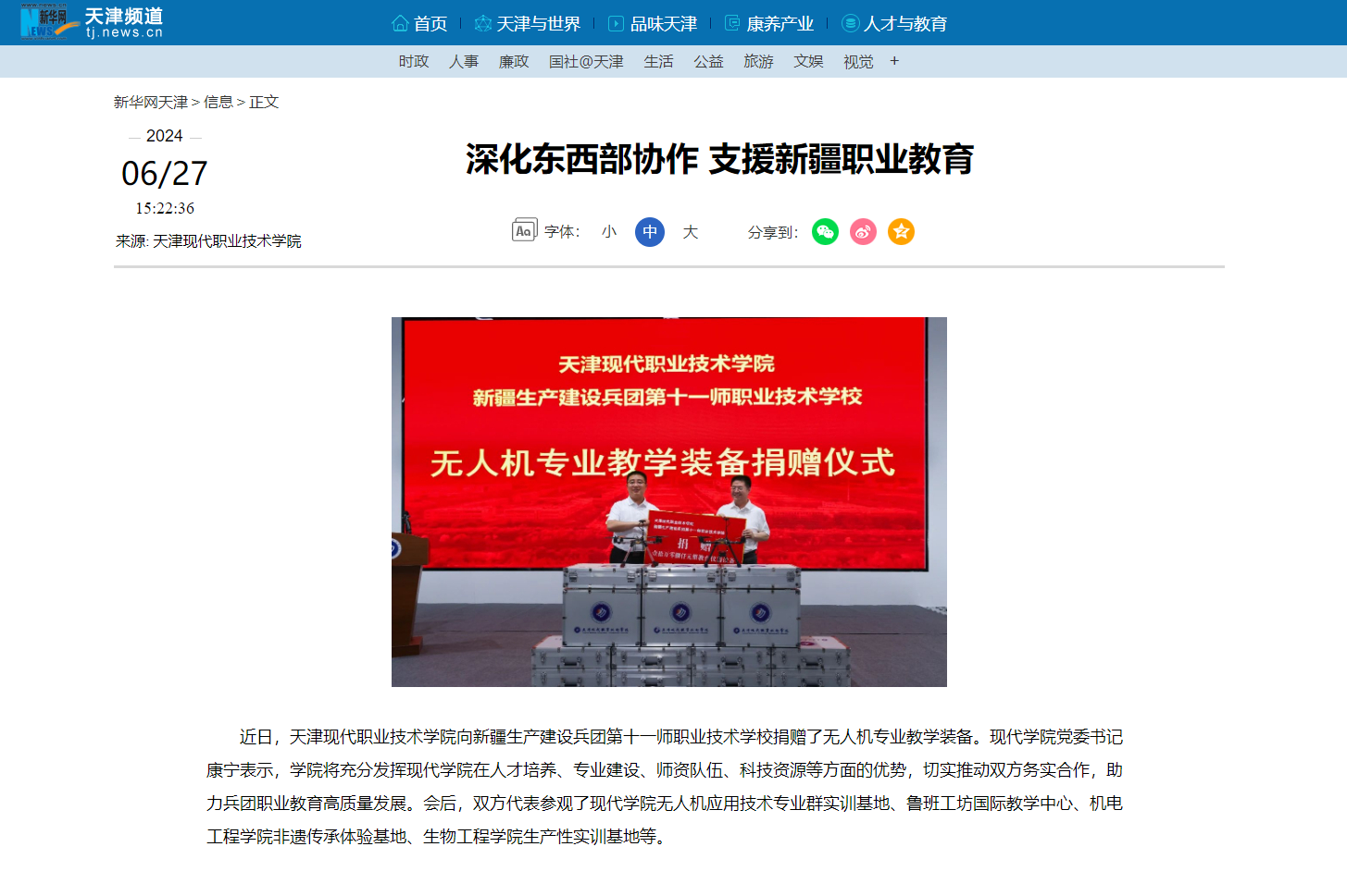 上一条:天津教育报:现代职院向新疆职业教育捐赠无人机教学装备 创新职教援疆模式