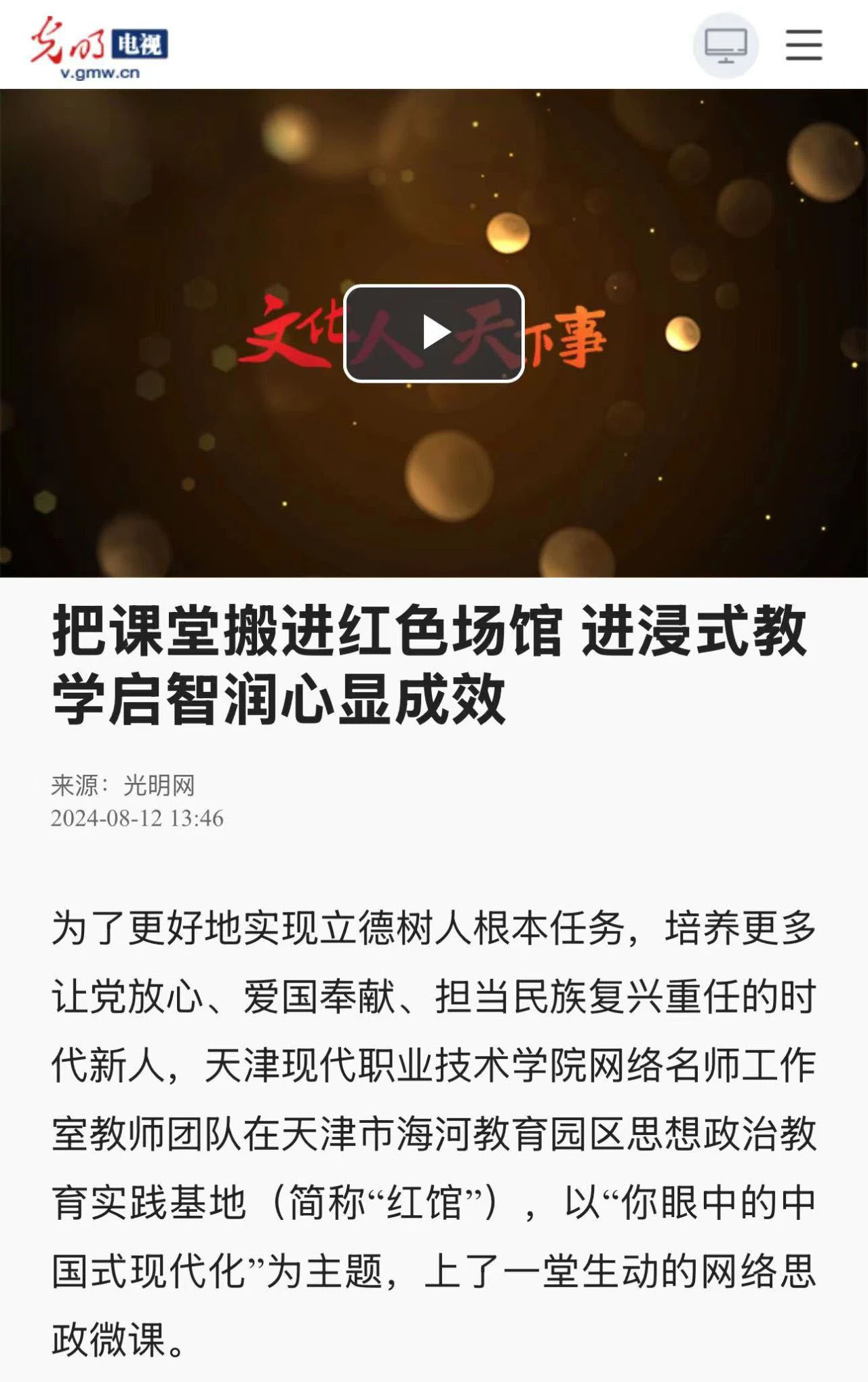 为了更好地实现立德树人根本任务,培养更多让党放心、爱国奉献、担当民族复兴重任的时代新人,KY开元集团官网网络名师工作室教师团队在天津市海河教育园区思想政治教育实践基地(简称“红馆”),以“你眼中的中国式现代化”为主题,上了一堂生动的网络思政微课。