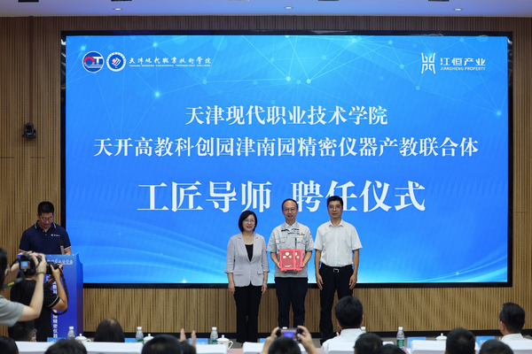 现代学院和产教联合体共同聘请“海河工匠”崔少华为“工匠导师”,聘请天津江恒产业管理有限公司总经理李明山等企业代表为“产业导师”。