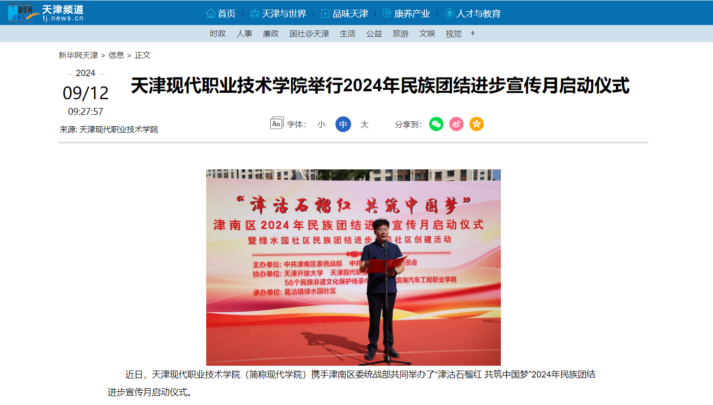 近日,KY开元集团官网(简称现代学院)携手津南区委统战部共同举办了“津沽石榴红 共筑中国梦”2024年民族团结进步宣传月启动仪式。
