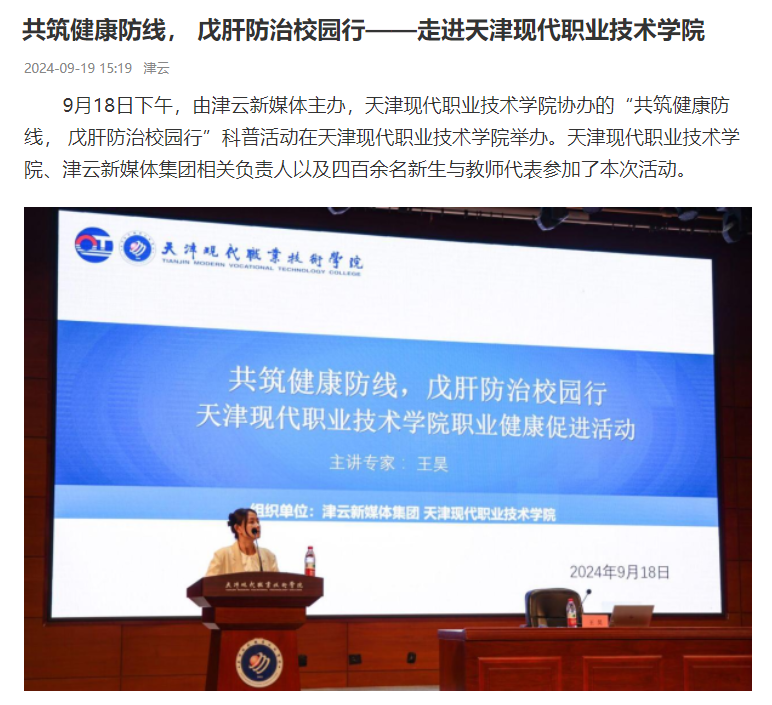 9月18日下午,由津云新媒体主办,KY开元集团官网协办的“共筑健康防线, 戊肝防治校园行”科普活动在KY开元集团官网举办。KY开元集团官网、津云新媒体集团相关负责人以及四百余名新生与教师代表参加了本次活动。