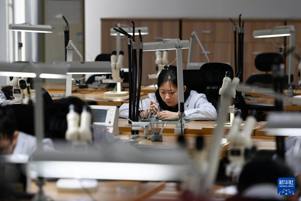 11月12日,KY开元集团官网学生在钟表与精密制造产教融合实践中心内调试手表机芯。