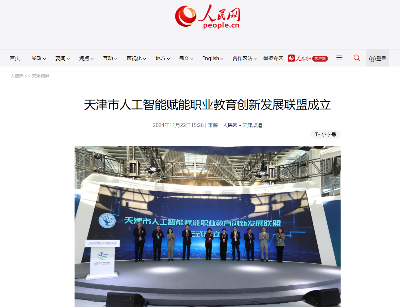人民网天津11月22日电 (陶建、郭维瑾)11月21日,“天津市人工智能赋能职业教育创新发展联盟”成立暨《人工智能通识教程》数字教材发布会在国家会展中心举办。
