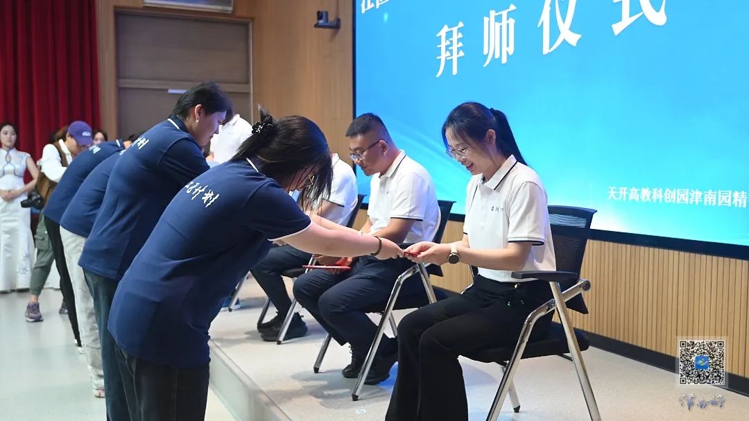 在隆重的拜师礼环节,新学员向院校导师及产业导师行传统拜师礼,表达尊师重道、传承匠心的决心。首届定制班班长孙盼宝将象征工匠精神的班旗郑重交接至第二届班长刘顺达手中,标志着产教融合人才培养的接力与延续。