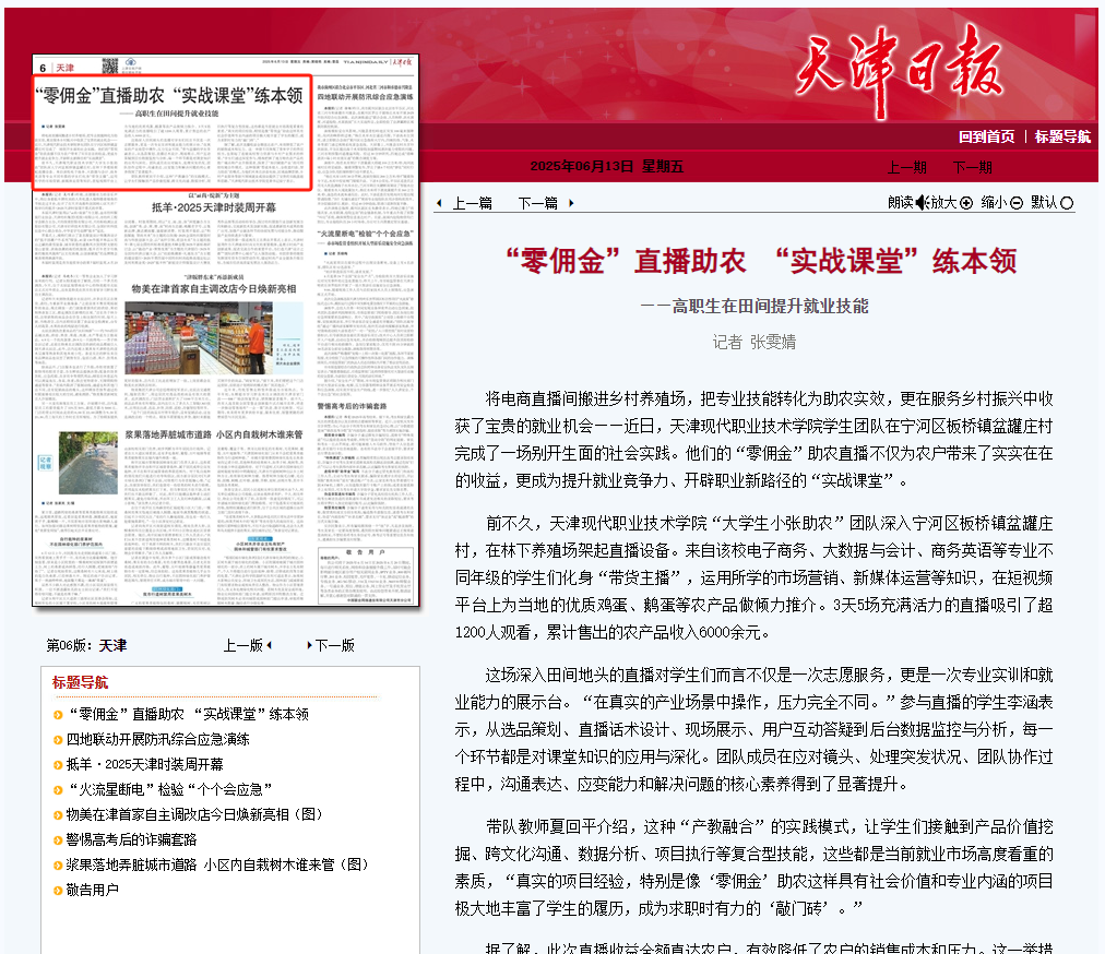 这场深入田间地头的直播对学生们而言不仅是一次志愿服务,更是一次专业实训和就业能力的展示台。“在真实的产业场景中操作,压力完全不同。”参与直播的学生李涵表示,从选品策划、直播话术设计、现场展示、用户互动答疑到后台数据监控与分析,每一个环节都是对课堂知识的应用与深化。团队成员在应对镜头、处理突发状况、团队协作过程中,沟通表达、应变能力和解决问题的核心素养得到了显著提升。