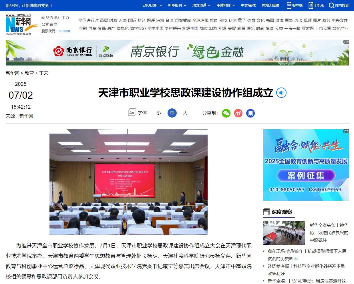 会上,天津市职业学校思政课协作组和新华网签订框架合作协议、与会嘉宾共同为协作组揭牌。