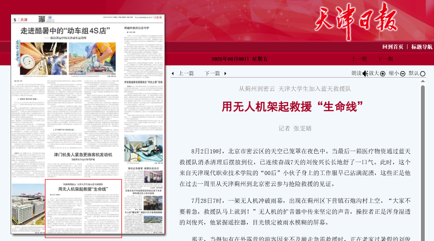 令人动容的是,当学校老师打来慰问电话时,刘俊兴只是简单报了平安,对自己参与救援的事只字未提。直到蓟州平安蓝天救援队的感谢信寄到学校,这段感人的故事才被大家知晓。“我只是做了力所能及的事。”面对赞誉,刘俊兴显得十分谦逊,但这质朴的话语背后,是一名新时代青年学子的责任与担当。他用专业技能架起空中“生命线”,更用奉献精神为青春写下生动注脚。
