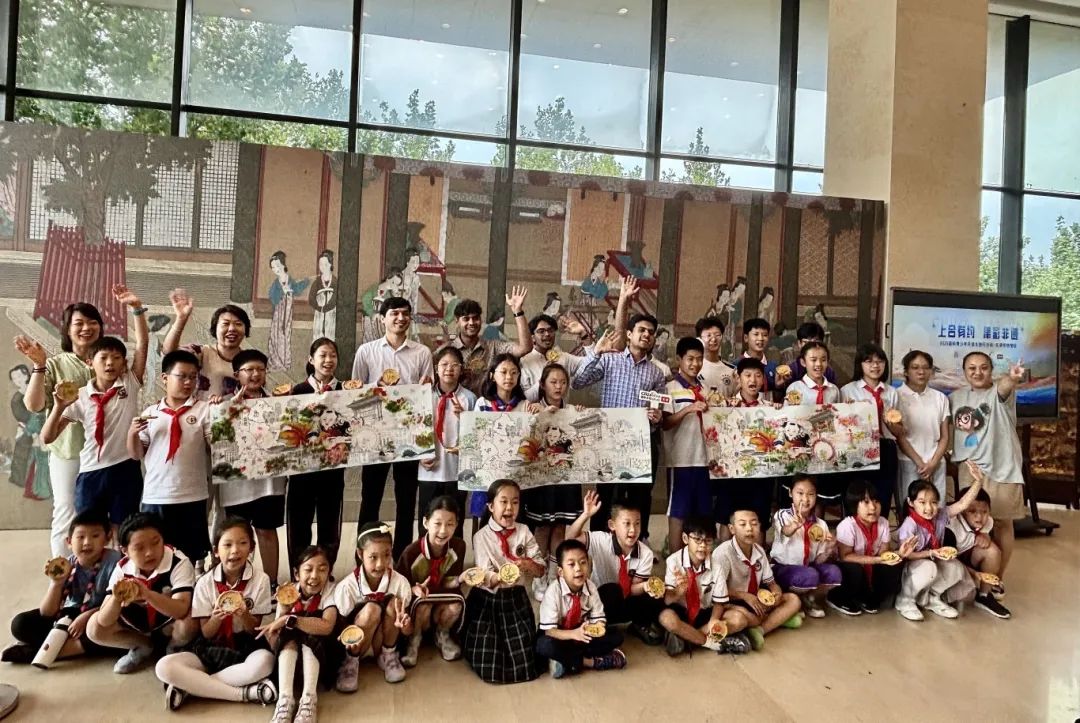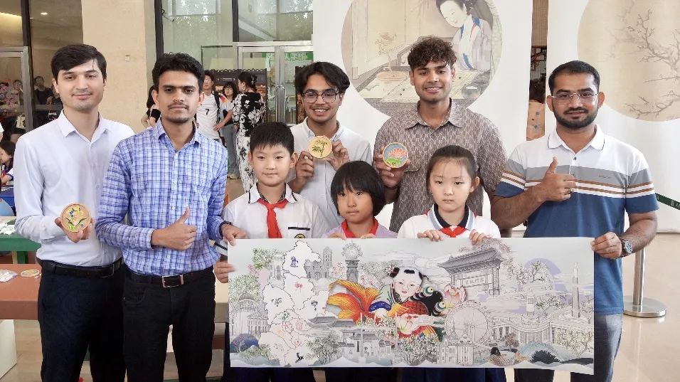 2025上海合作组织峰会即将在天津召开,中外青少年手持共同绘制的“我心中的中国画卷”合影留念,并满怀深情地发出诚挚祝愿:“‘上合有约 津彩非遗’,祝上合峰会圆满成功!”。
