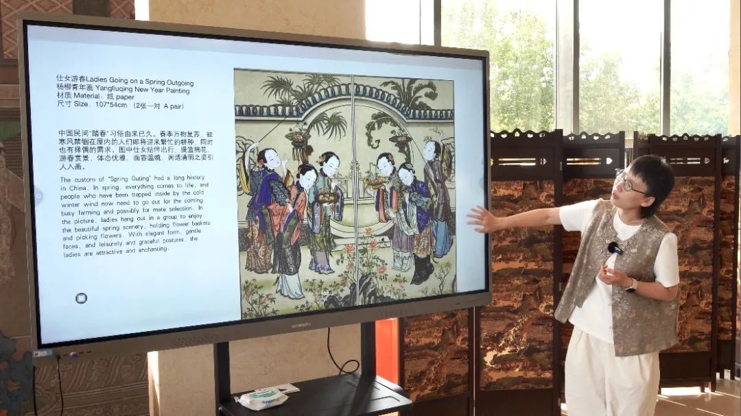 天津杨柳青画社成立于1958年,先后获得“国家级非物质文化遗产生产性保护示范基地”“国家文化产业示范基地”“国家非物质文化项目重点保护单位”等荣誉,画社传承保护的国家级非遗项目杨柳青木版年画可谓是驰名中外,堪称津派文化的亮丽名片。2024年2月1日,习近平总书记到天津古文化街视察工作时,曾给予杨柳青年画“全国知名,享誉海外”的高度评价。仪式上,天津杨柳青画社有限公司副总经理安子宁向国际青年赠送特色年画文创产品,希望他们能够深度了解杨柳青年画的制作工艺,向世界传播杨柳青年画的文化内涵。