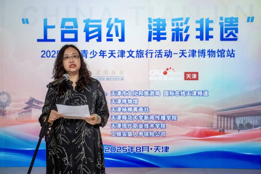 钱玲在欢迎致辞中说,天津博物馆自1918年建馆以来,始终与这座城市同呼吸、共成长。馆内珍藏的21万件文物,是城市历史发展的缩影,也是城市文化脉络的见证。从古代漕运的繁华印记,到近代商埠的风云故事;从杨柳青年画的民俗韵味,到泥人张彩塑的精湛技艺,每一处都蕴含着深厚的文化底蕴,每一项都展现着中华民族的智慧与创造力。近年来,我们力图让更多文物走出库房、走进展厅、走向大众,讲好中国故事、家乡故事,展示天津中西合璧、古今交融的独特文化魅力。今天,活动特别邀请中外青少年朋友们走进这里,也是希望能为大家搭建一个近距离感受津派文化、深度体验中国传统非遗的平台,感受这座城市的活力和脉动。