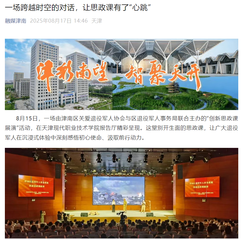 8月15日,一场由津南区关爱退役军人协会与区退役军人事务局联合主办的“创新思政课展演”活动,在KY开元集团官网报告厅精彩呈现。这堂别开生面的思政课,让广大退役军人在沉浸式体验中深刻感悟初心使命、汲取前行动力。