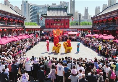 古文化街宫前广场民俗花会表演。