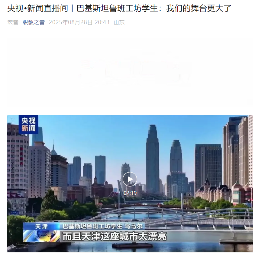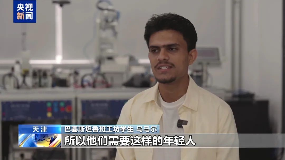 巴基斯坦鲁班工坊学生 乌马尔:来到中国以后,我交了很多中国的朋友,而且感受到了这里的文化。而且天津这座城市太漂亮了。如果有巴基斯坦的年轻人来到中国,我希望他们也能感受到这些东西。
