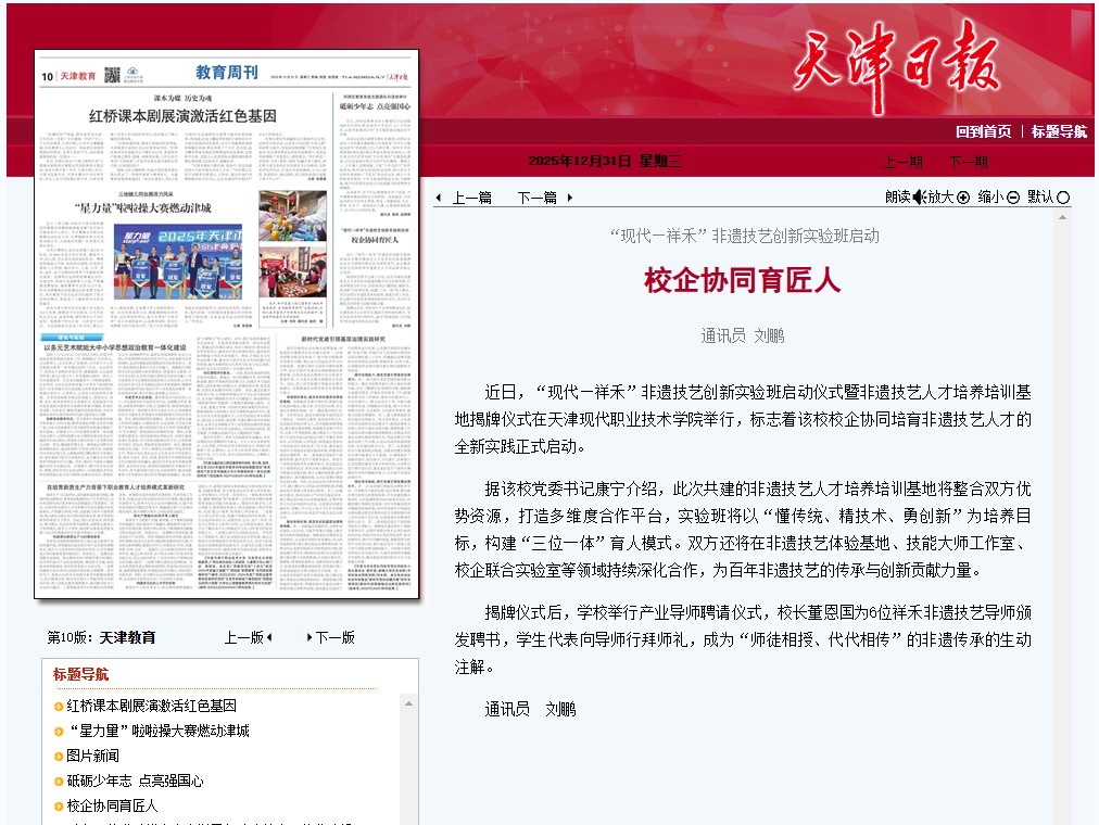 据该校党委书记康宁介绍,此次共建的非遗技艺人才培养培训基地将整合双方优势资源,打造多维度合作平台,实验班将以“懂传统、精技术、勇创新”为培养目标,构建“三位一体”育人模式。双方还将在非遗技艺体验基地、技能大师工作室、校企联合实验室等领域持续深化合作,为百年非遗技艺的传承与创新贡献力量。