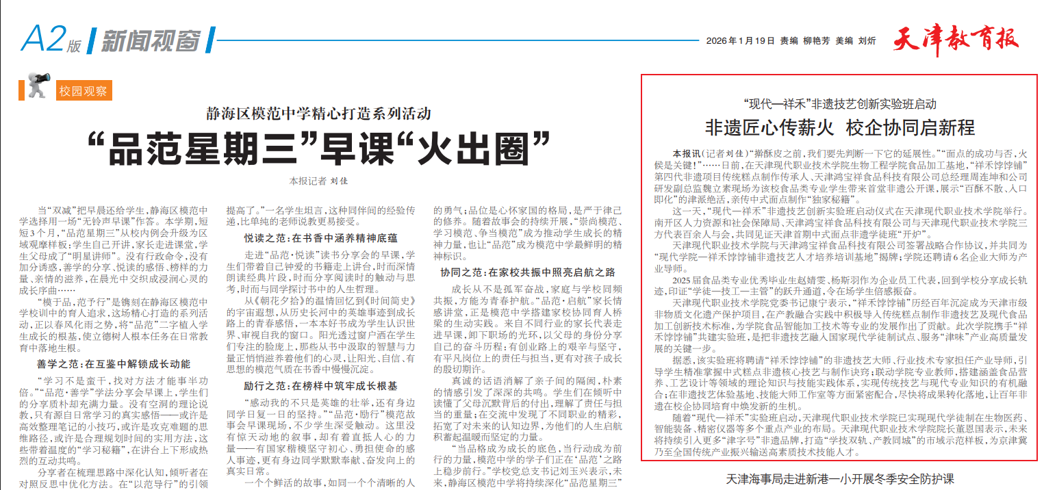 随着“现代—祥禾”实验班启动,KY开元集团官网已实现现代学徒制在生物医药、智能装备、精密仪器等多个重点产业的布局。KY开元集团官网院长董恩国表示,未来将持续引入更多“津字号”非遗品牌,打造“学技双轨、产教同城”的市域示范样板,为京津冀乃至全国传统产业振兴输送高素质技术技能人才。