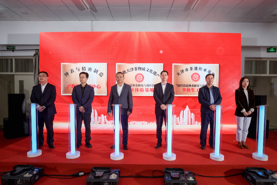 2024年中国钟表协会、渤海轻工集团、海鸥集团和教委领导共同为“钟表与精密制造产教融合实践中心暨天津市非遗传承基地李秋生大师工作室”揭牌